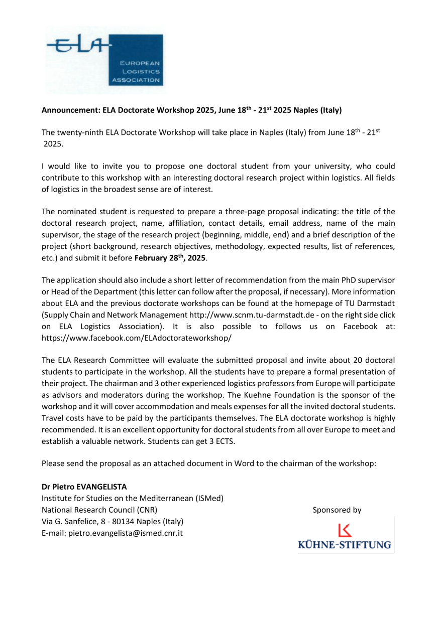 The ELA Doctorate Workshop 2024 reaffirmed its value as a cornerstone event in logistics research. By bringing together emerging scholars, experienced moderators, and industry 6 experts, the workshop fosters an environment where ideas are shared, collaborations are forged, and the next generation of logistics professionals is empowered.